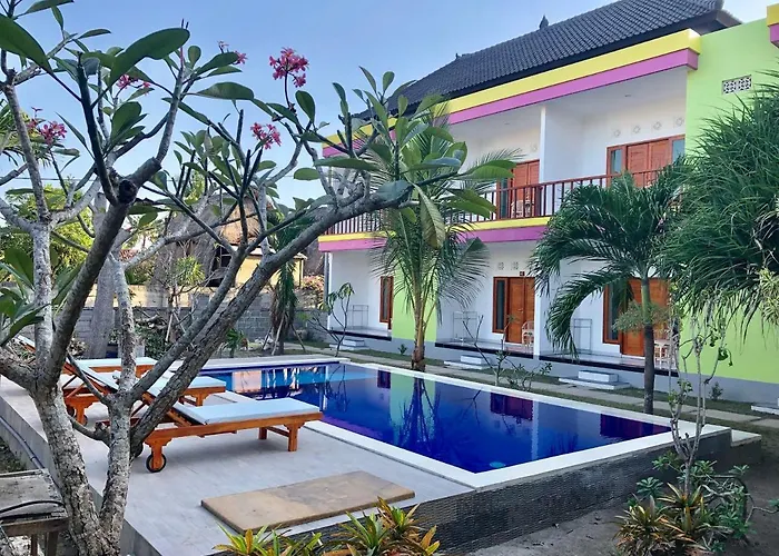 10-slaapkamer Nata Homestay appartementen liggen in de Jungut Batu wijk van Lembongan en biedt draadloos internet en gratis priveparkeerplaatsen ter plaatse. Het dichtstbijzijnde vliegveld is Ngurah Rai, 85 km van de accommodatie bij particulieren in Lembongan.